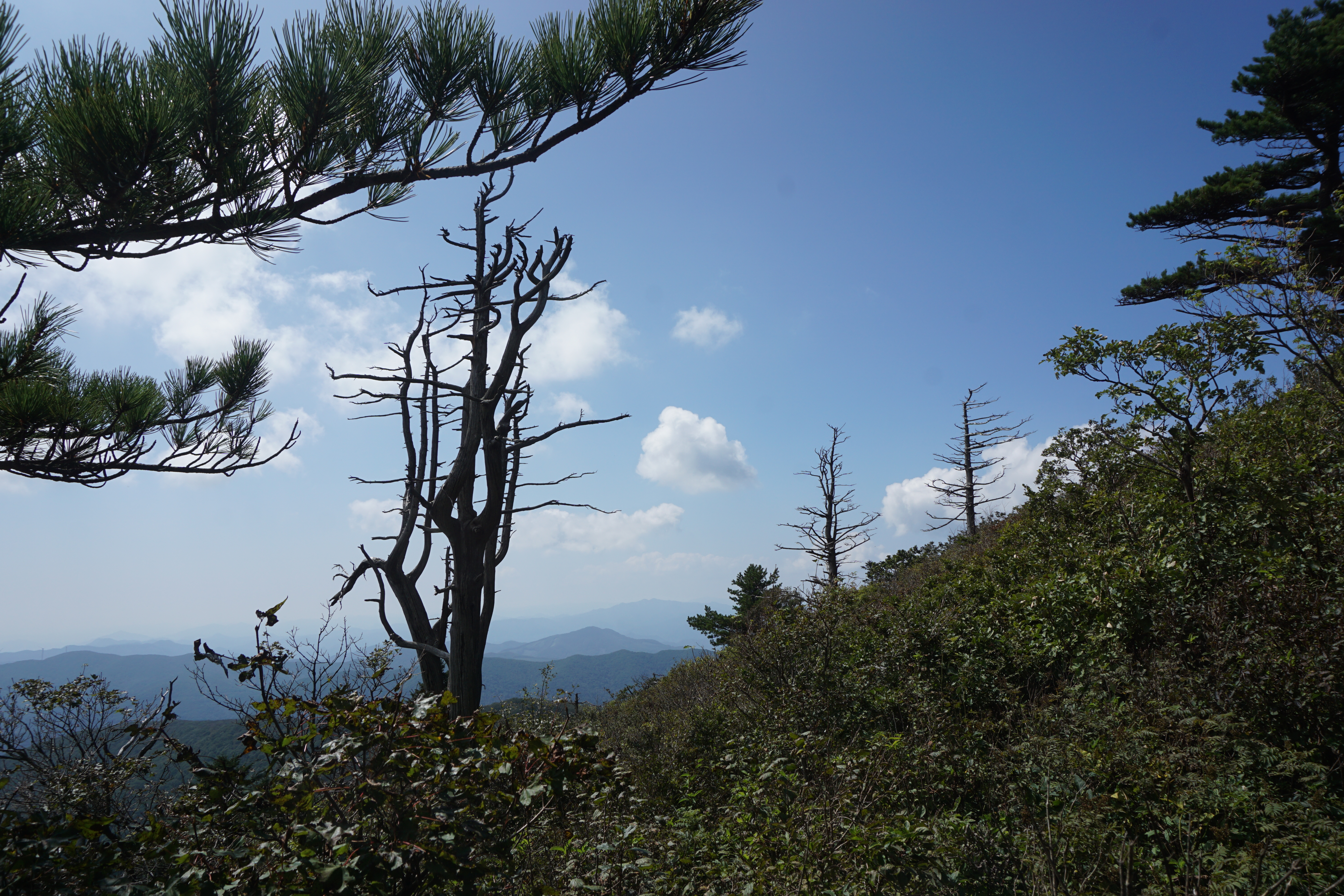 붙여놓았던 기억이 난다. 올림픽이 끝나면 제자리에 수목을 옮겨놓겠다는 약속은 어디로 가고 그때 설치되었던 케이블카는 지금도 운행되고 있는 아픈 추억이 있는 산이다. 10여 년이 지난 지금은 중봉 쪽의 등산로는 케이블카 때문인지 막혀 있어 갈 수가 없었다. 장구목이에서 오르는 길은 계속 돌계단길이고 정상에서 내려오는 길도 경사에 너덜길이어서 쉬운 길이