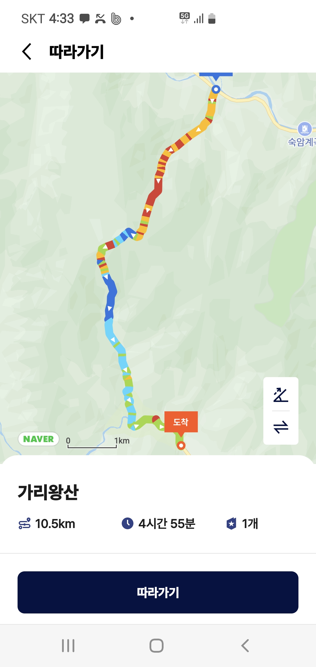 가리왕산휴양림-주차장(10.5km, 5시간 산행)