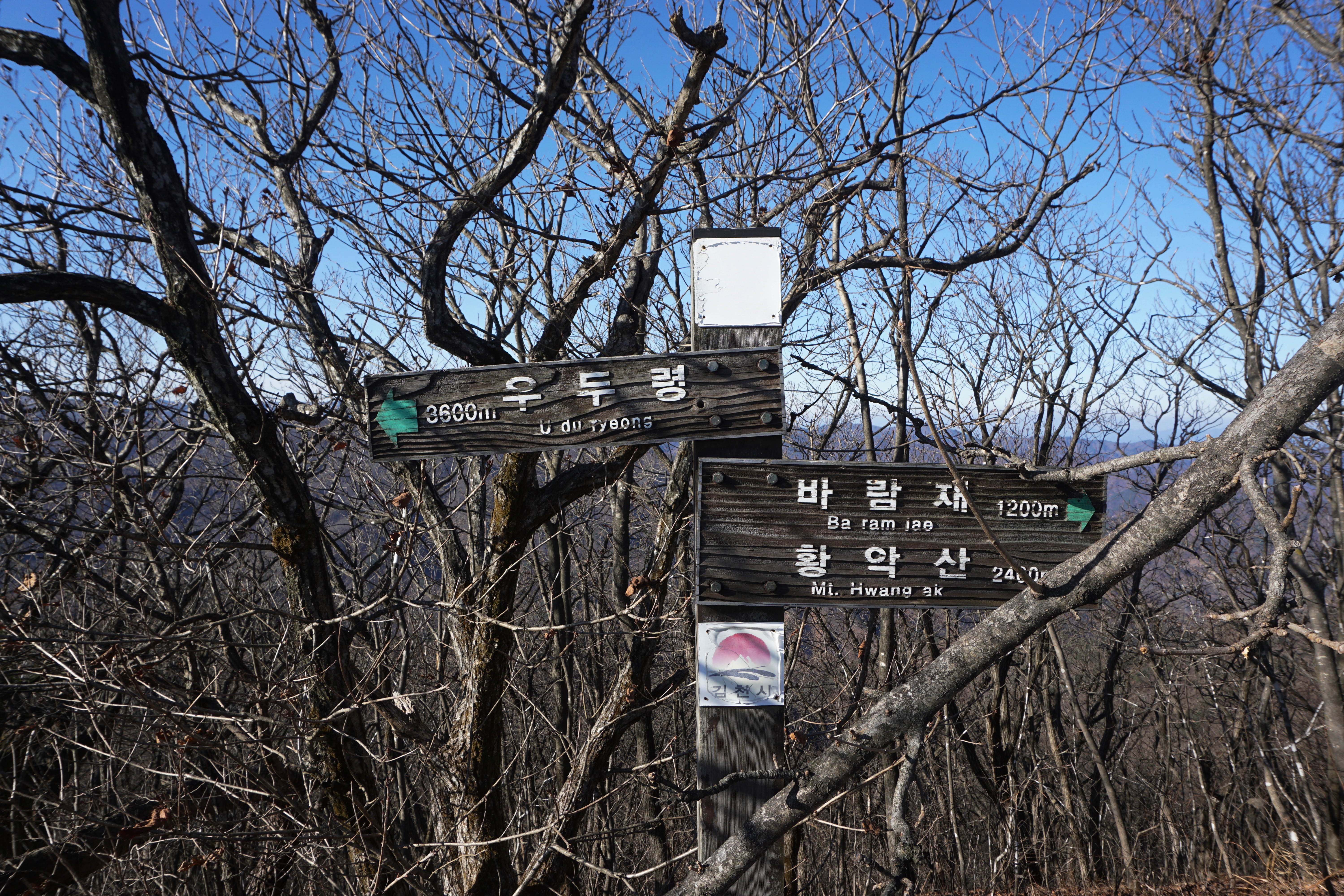 우두령-삼성산-여정봉-바람재-형제봉-황학산(1,111m)-백운봉-운수봉-여시골-여시골산-괘방령(13.2km, 6시간 산행)
