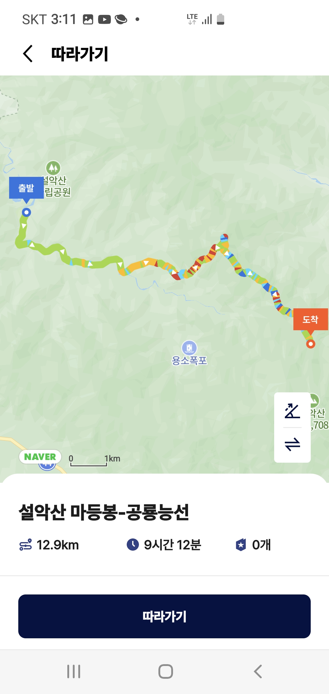 완료하고자 하는 뜻으로 산행을 계획하였다. 전주에서 350km가 넘는 길을 승용차를 타고 용대리에 주차하고 산행을 시작하였다.
