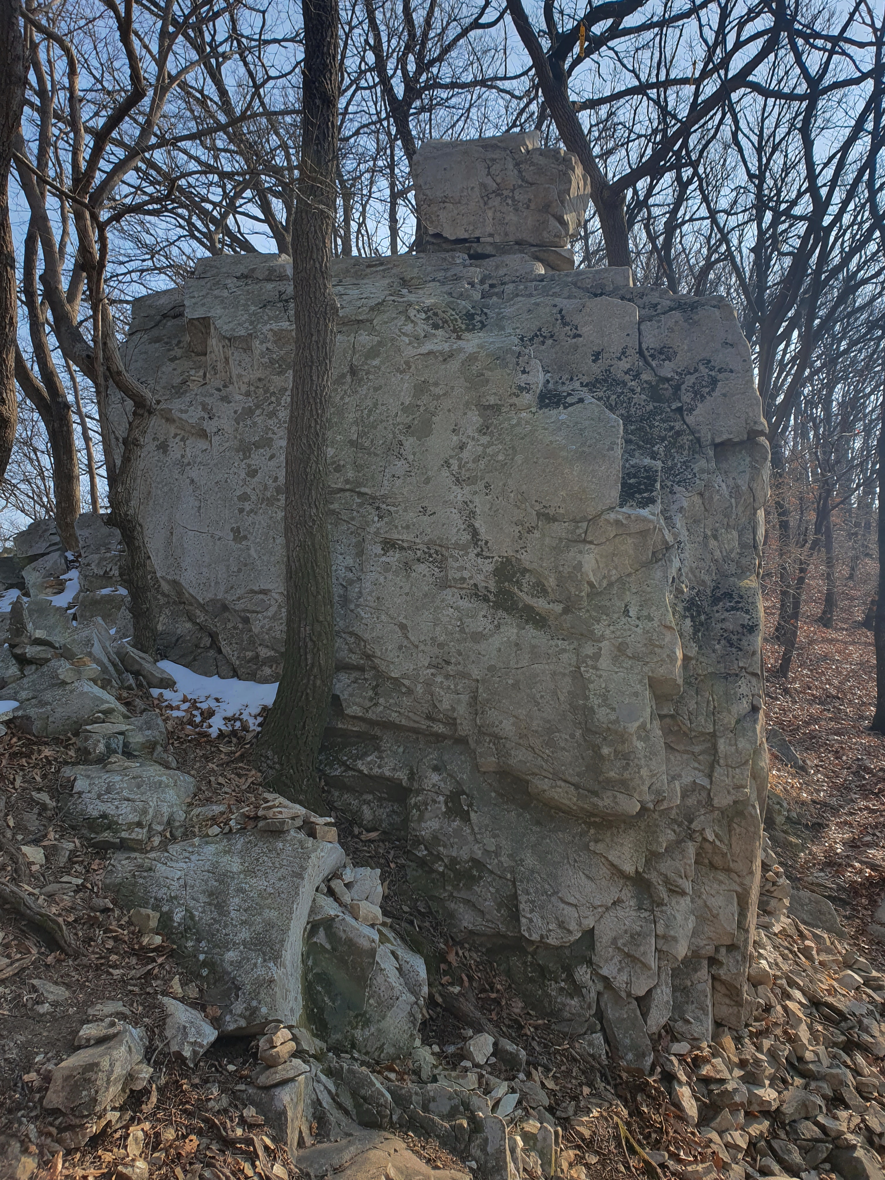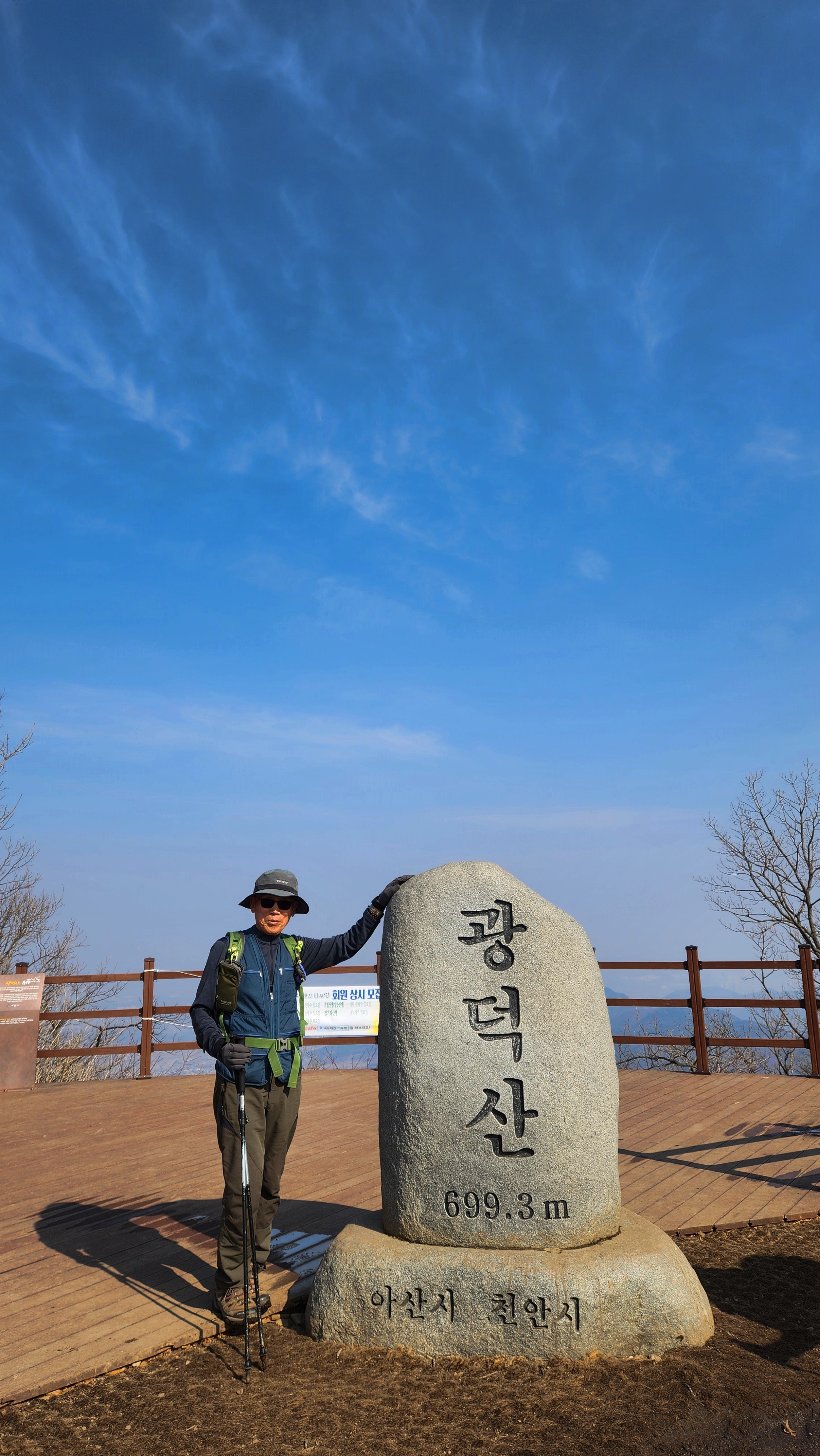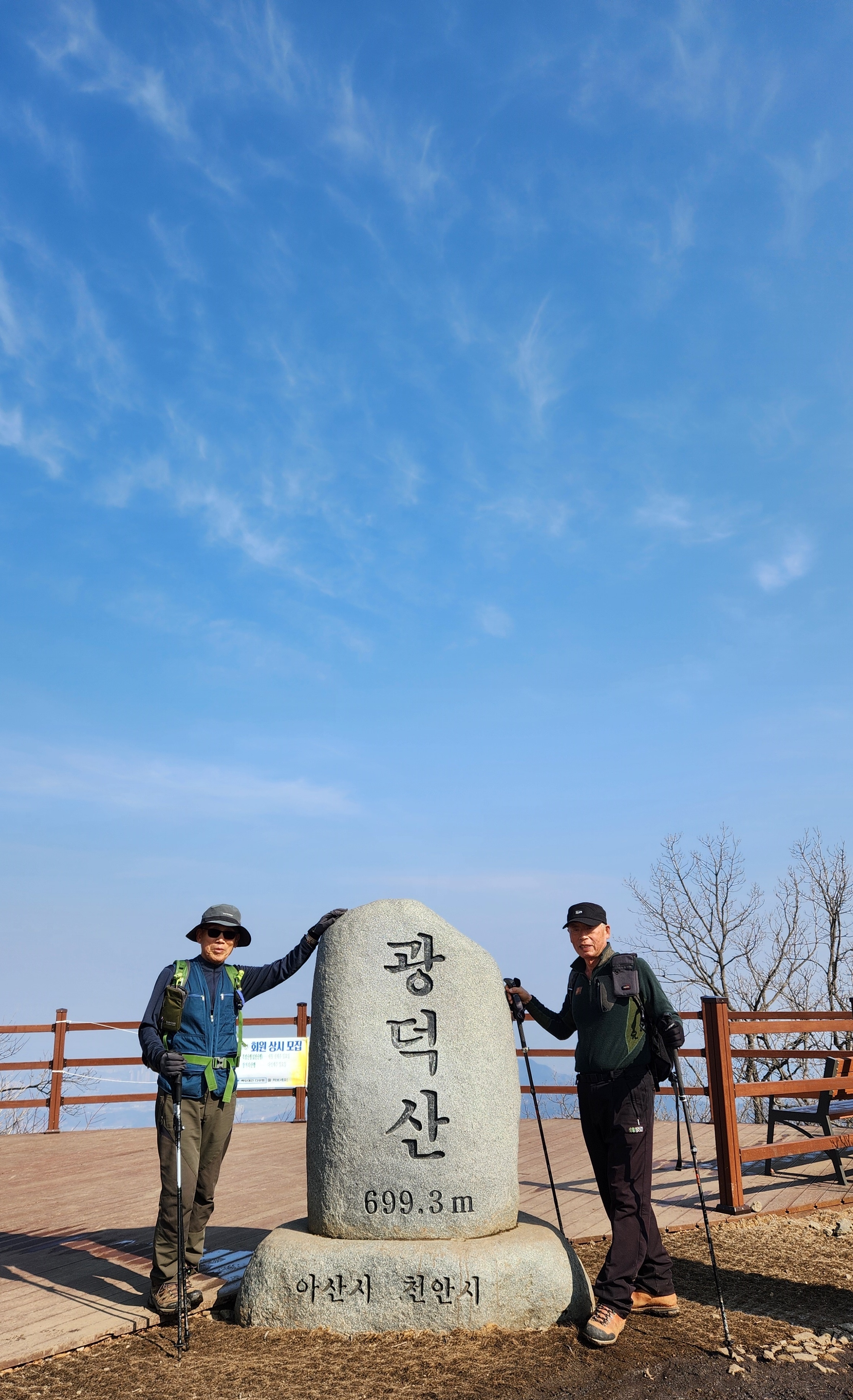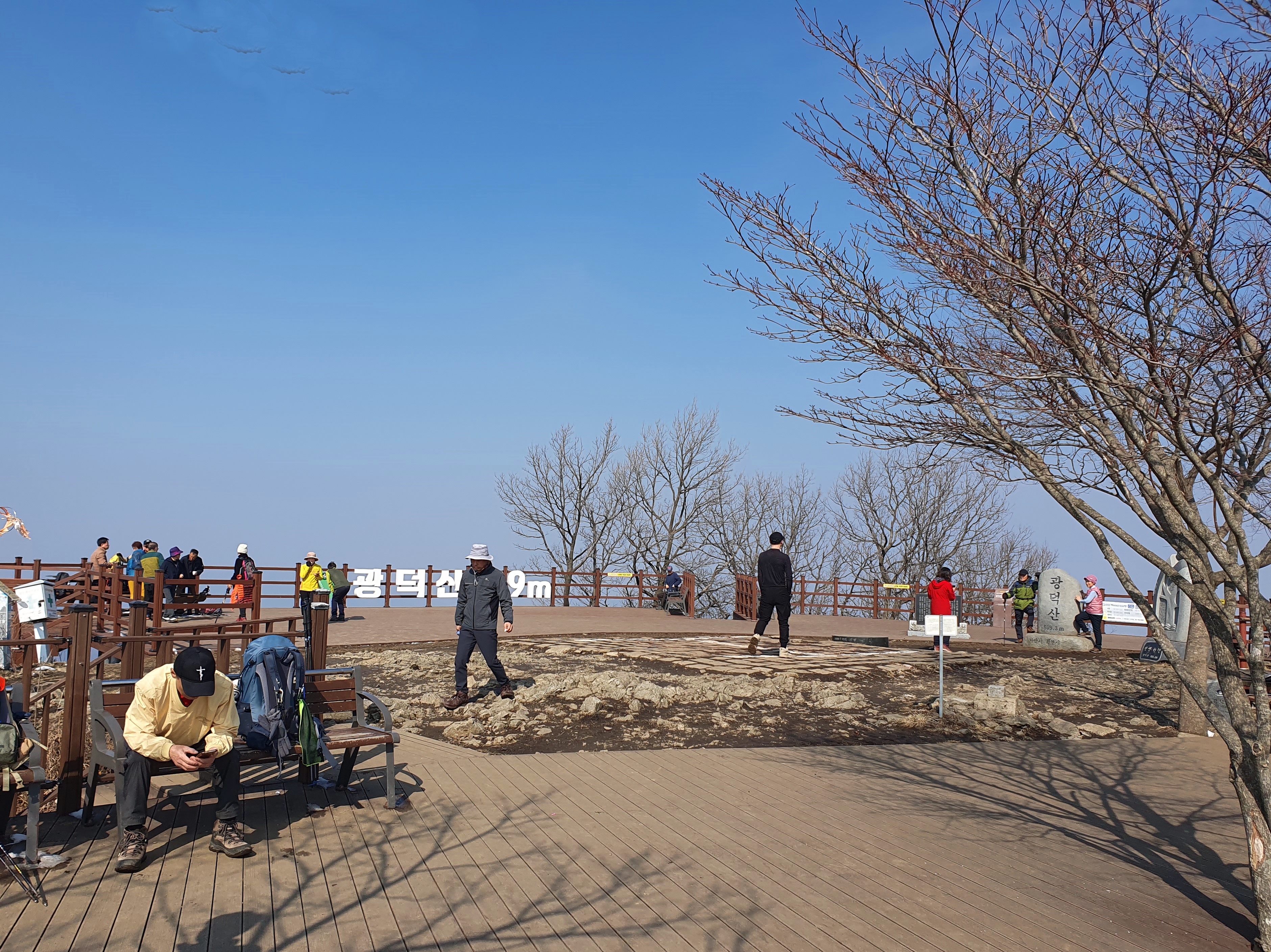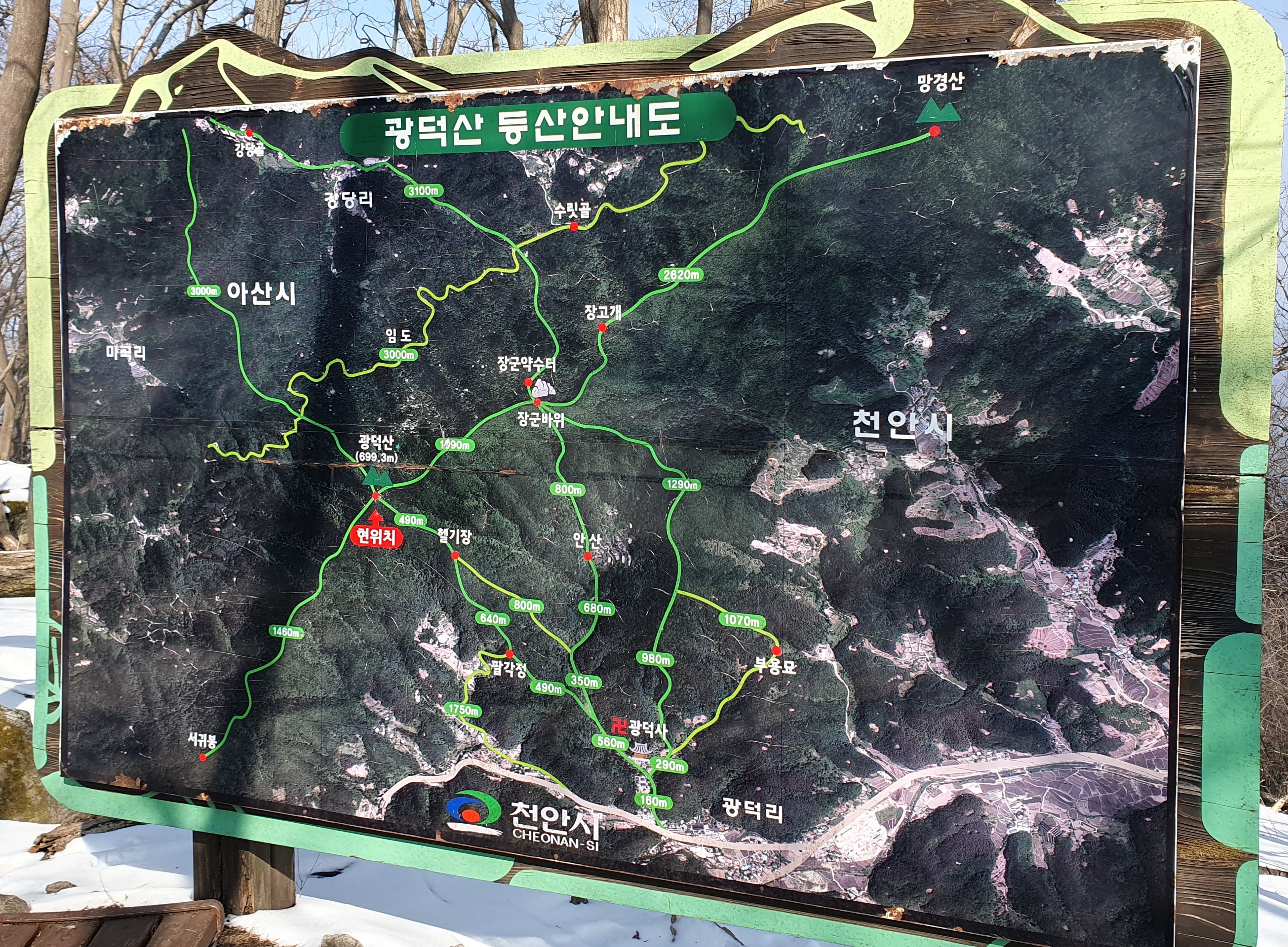 천안시 광덕면 주변에는 호두나무가 많이 생산된다. 산은 육산으로 크게 가파르지는 않지만 엊그제 내린 눈으로 정상 부근과 하산길은 응달이어서 눈길이라 길이 미끄러웠다. 3월인데 겨울 산행처럼 눈길을 걸어서 내려왔다.